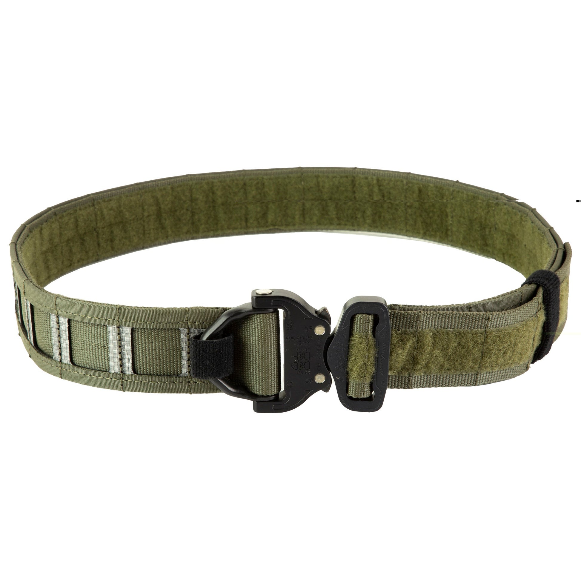 The GBRS Group Assaulter Belt utilizes a 2 belt system to create a lightweight, flexible yet rigid and stable platform to attach equipment, holsters, and accessories. This is done by using Type 13" 1-23/32" belt webbing (7000 lbs. tensile strength) as the base, with a field of PALS webbing, laser cut from a semi-rigid woven thermo-polymer. This ensures that your equipment is always secured to something rigid while allowing the belt to remain lightweight and comfortable. To round it off, GBRS double ,W, stitches the webbing to a load rated, 1.75" Austrialpin Cobra buckle with a D-ring for attaching helo lanyards and other equipment. The outer belt has an inner facing of ,loop, style Velcro, to attach to a low profile ,hook, inner belt. This is done because hooks should never be worn towards the body, especially in such a high-wear area (belt line). The inner belt system consists of a low profile ,hook, inner belt with a single layer of 1.5" scuba webbing. This results in a system that doubles as a non-metallic EDC belt and is a comfortable and convenient way to cover the abrasive hook portion of the inner belt when flipped inside out. The single layer of scuba webbing allows for a rigid surface for IWB holsters to secure firmly.