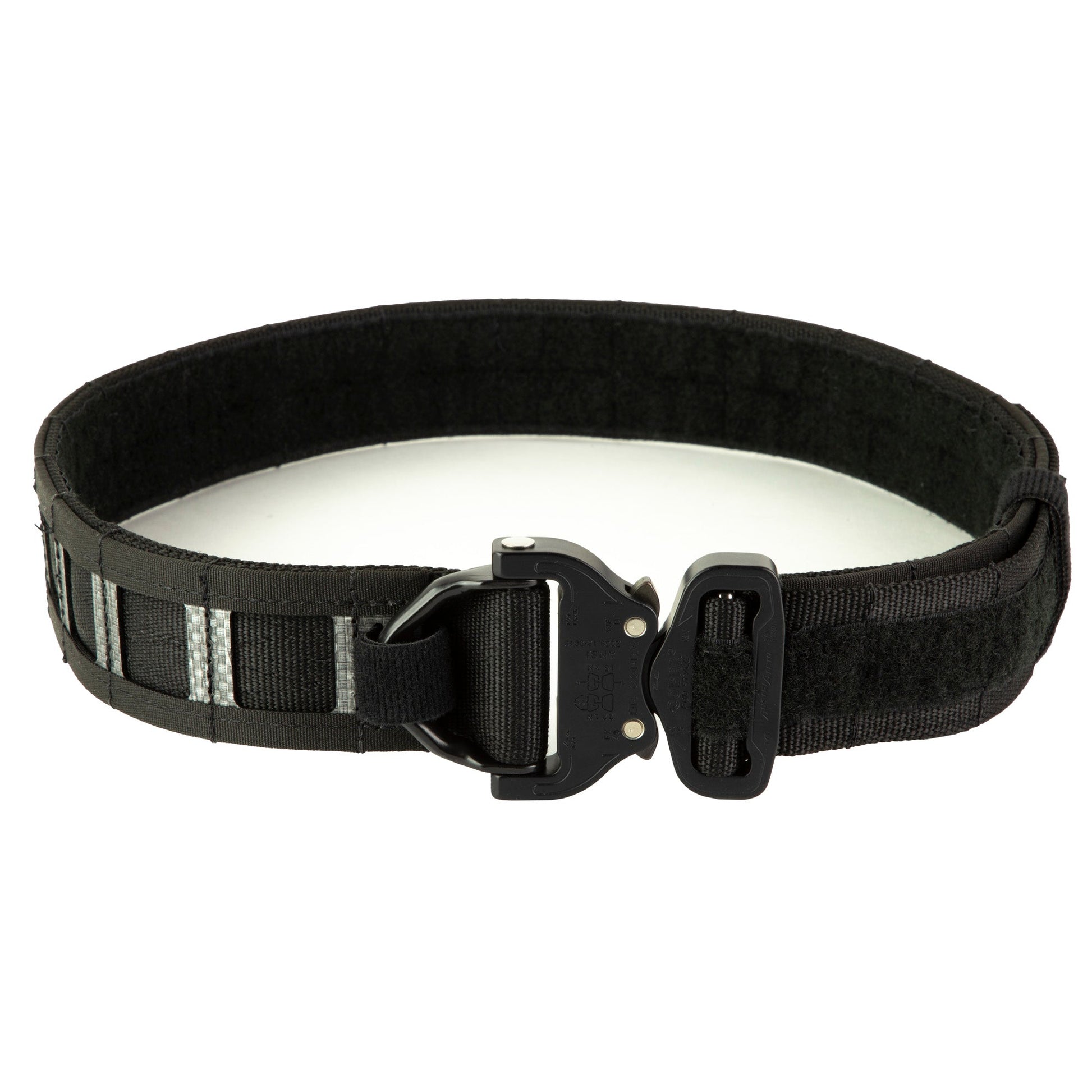 The GBRS Group Assaulter Belt utilizes a 2 belt system to create a lightweight, flexible yet rigid and stable platform to attach equipment, holsters, and accessories. This is done by using Type 13" 1-23/32" belt webbing (7000 lbs. tensile strength) as the base, with a field of PALS webbing, laser cut from a semi-rigid woven thermo-polymer. This ensures that your equipment is always secured to something rigid while allowing the belt to remain lightweight and comfortable. To round it off, GBRS double ,W, stitches the webbing to a load rated, 1.75" Austrialpin Cobra buckle with a D-ring for attaching helo lanyards and other equipment. The outer belt has an inner facing of ,loop, style Velcro, to attach to a low profile ,hook, inner belt. This is done because hooks should never be worn towards the body, especially in such a high-wear area (belt line). The inner belt system consists of a low profile ,hook, inner belt with a single layer of 1.5" scuba webbing. This results in a system that doubles as a non-metallic EDC belt and is a comfortable and convenient way to cover the abrasive hook portion of the inner belt when flipped inside out. The single layer of scuba webbing allows for a rigid surface for IWB holsters to secure firmly.