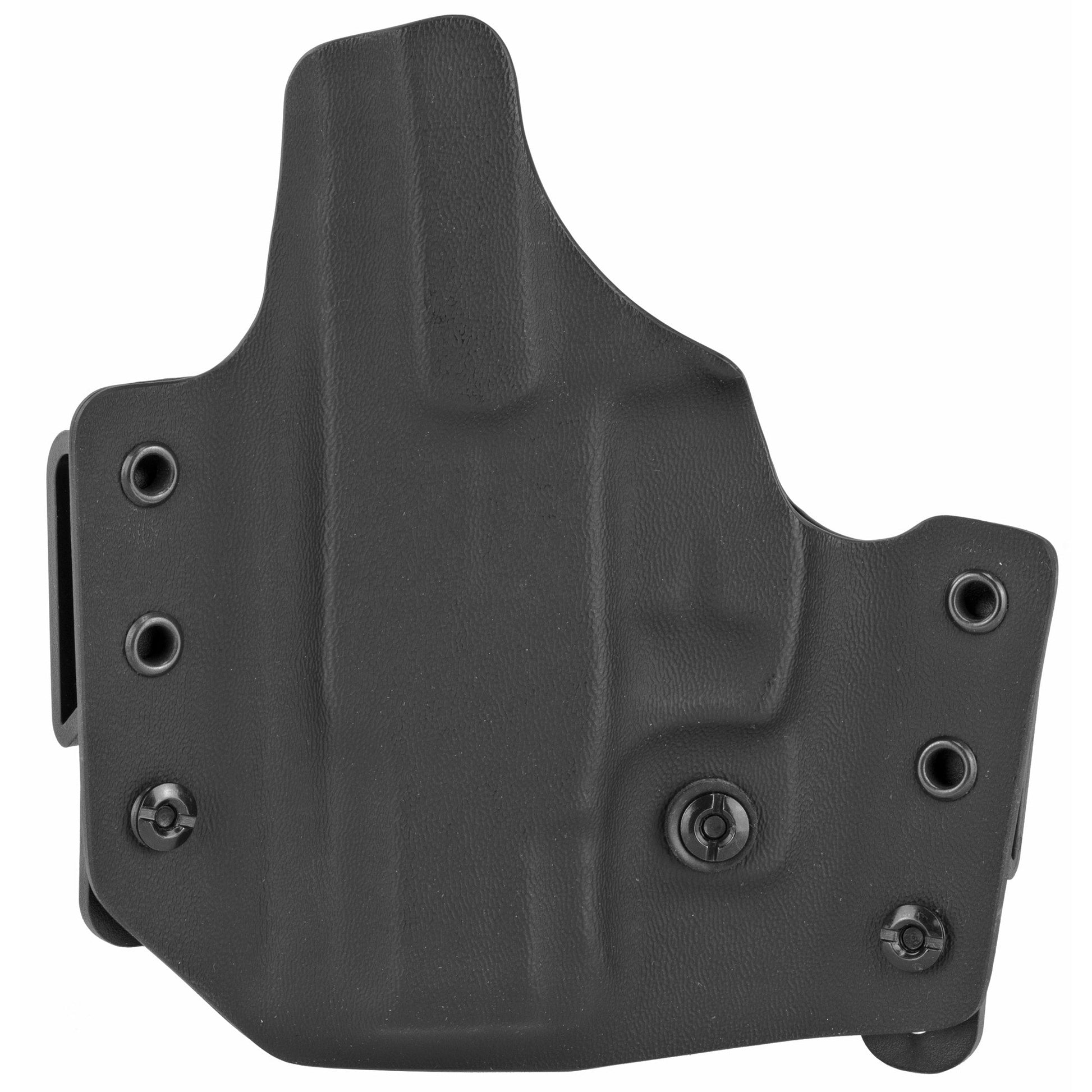 The LAG Tactical Defender IWB/OWB Holster is the most popular model in the line-up of holsters. These Holsters by L.A.G. Tactical have interchangeable belt loops to quickly convert from outside (OWB) the waistband to inside (IWB) for maximum flexibility. The L.A.G. Tactical Defender Belt Holster is made of a lightweight and durable Kydex with adjustable retention, and is also compatible with the MOLLE backplate making it even more versatile for different carry options. For the last holster youll ever need to buy, choose the LAG Defender Adjustable Holster.