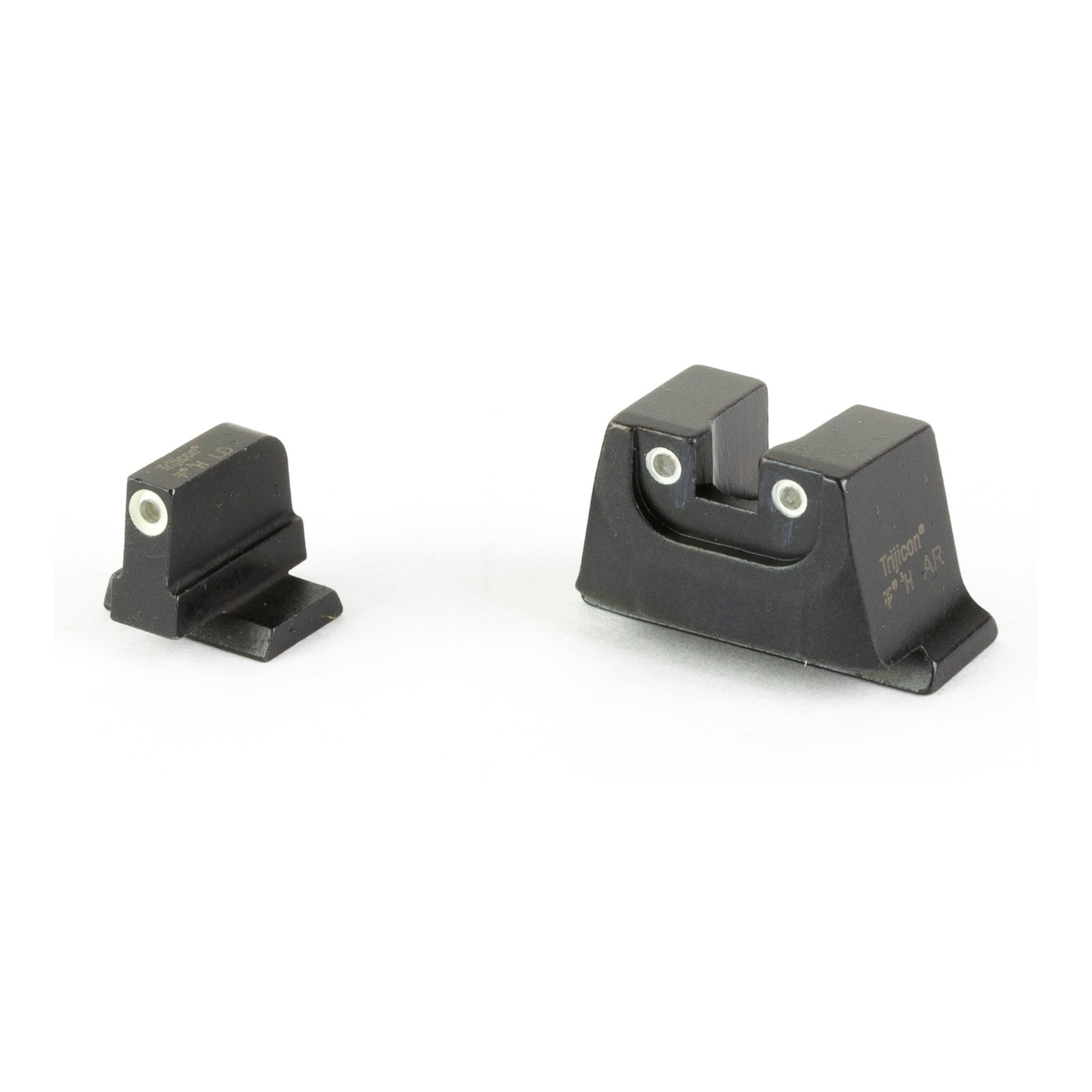 Trijicon Suppressor/Optic Height Sights are three-dot tritium iron sights that allow shooters the ability to line up their sights in both bright and low-light situations. While standard height sights do not provide an aiming solution when using a suppressed firearm; the additional height of suppressor night sights will clear the added height of a suppressor, allowing shooters the ability to line up their sights on target. Additionally, suppressor night sights can be used as back up iron sights with the Trijicon RMR. Green lamps are warranted for 12 years from the date of manufacture.