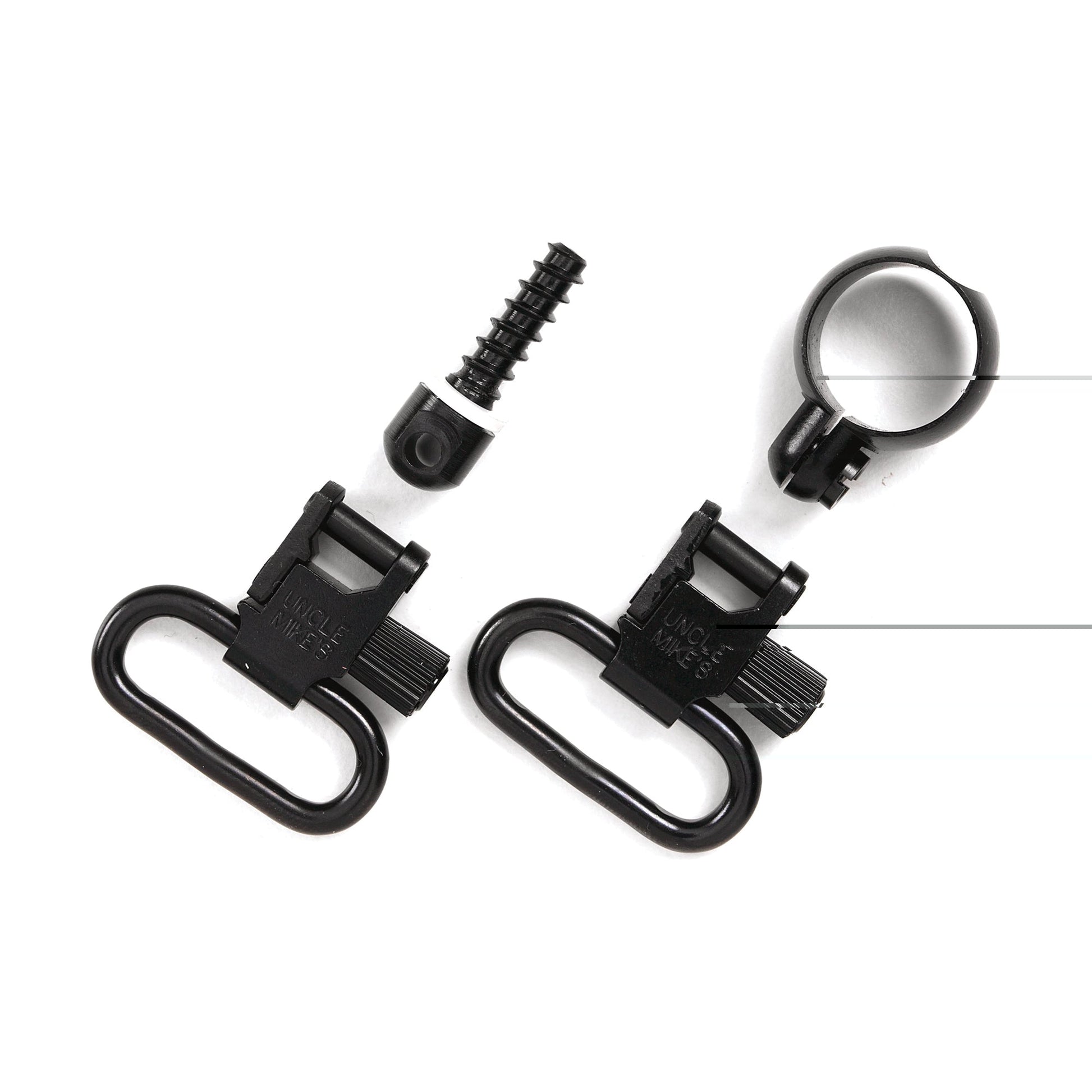 Full band lever action sling swivels made by Uncle Mikes. Full magazine tube diameters .645-.660" for Winchester(R) and Marlin(R) centerfire lever actions.